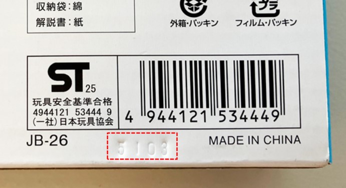 パッケージ裏面の刻印、またはコマ収納用巾着袋の印刷をご確認ください 。