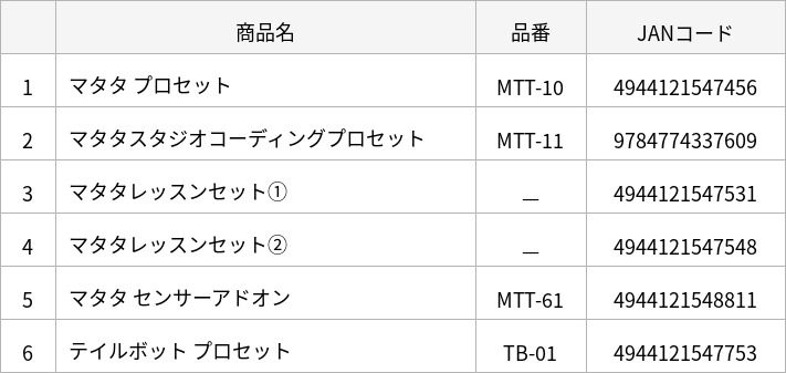 このたび、長らくご愛顧いただいておりましたプログラミング教材「マタタシリーズ」につきまして、ライセンス契約の終了に伴い、2026年3月31日をもちまして販売を終了させていただくこととなりました。