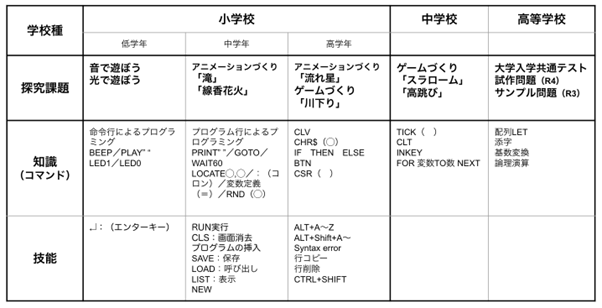 上図は前回紹介した初学者向けのIchigoJam BASICの導入と展開カリキュラム案です。