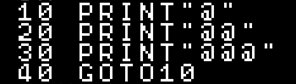 そしてこのプログラムがいつまで続くかを子どもたちに改めて問い、これは無限ループであり、コンピュータは疲れたり飽きたりせずに、プログラムを実行し続けることを伝えます。これこそがコンピュータの最も重要な特質であることを理解させ、この後に「RUN」実行したらどうなるかを予想させるのです。またこの時に、「コンピュータは作成されたプログラムを高速で実行(処理)する」ことも必ず伝えます。