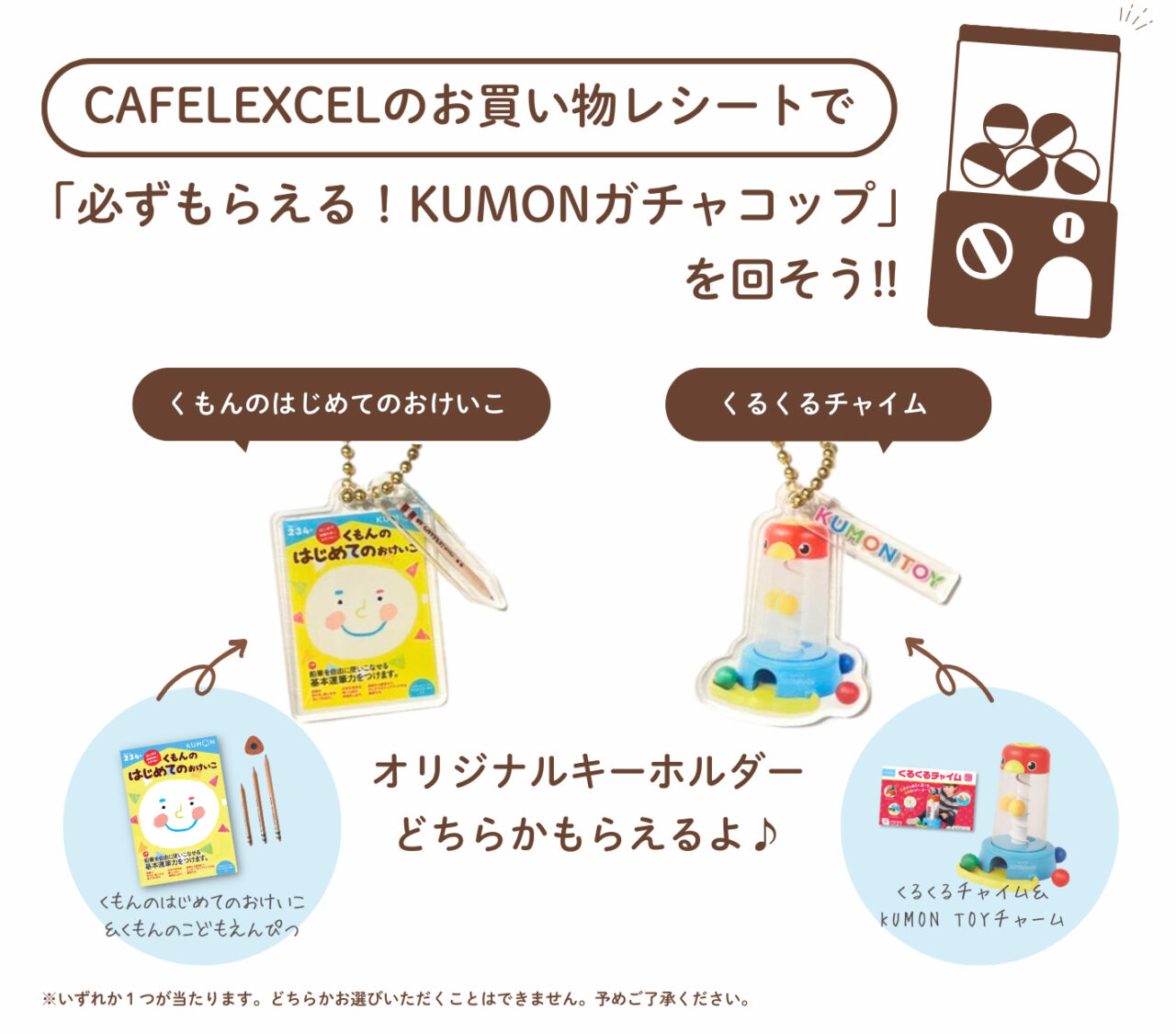 3、「必ずもらえる!KUMONガチャコップ」を回しましょう。KUMON TOYオリジナルキーホルダー(2種のうちどちらか1つ/非売品)がもらえます。