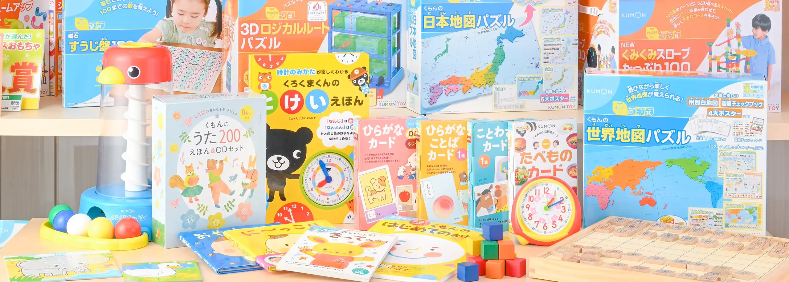 くもん出版は、お子さまの成長に合わせて選んでいただける知育玩具やドリル、中高生用の参考書、大人まで楽しめる書籍やドリルなど、一人ひとりの「できた!」のお手伝いができる商品をつくっています。