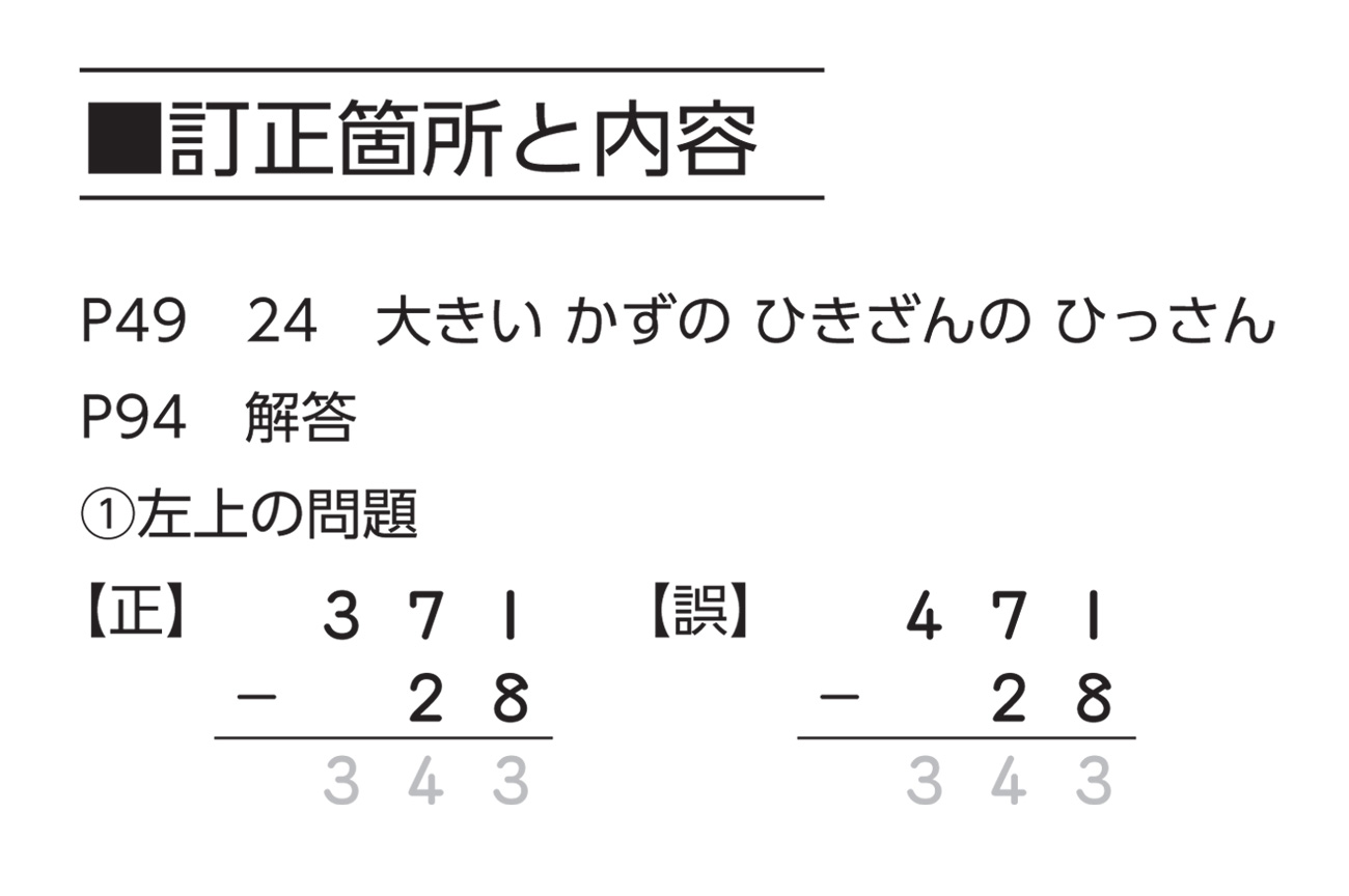 商品名: ハチャメチャ!ミニオンズドリル小学2年生計算 投稿日 2025/04/02 著者 くもん出版 誤植カテゴリー 小学ドリル 下記の商品において内容の一部に誤りがあることが判明いたしました。深くお詫び申し上げますとともに訂正させていただきます。 印刷用 PDF はこちらから ダウンロード 商品情報はこちら